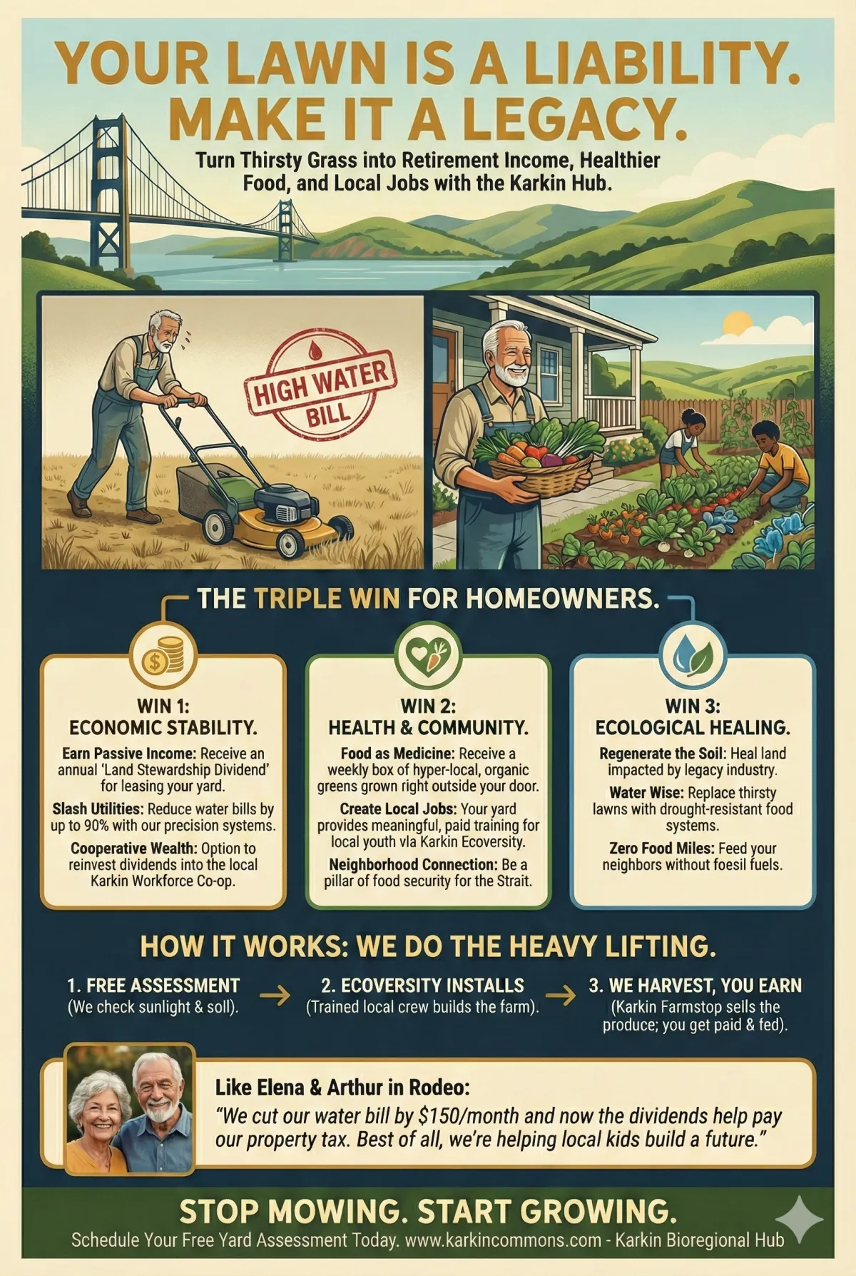 By converting your lawn, you aren't just saving on water bills. You are sequestering carbon, creating fire-safe "green buffers" for the neighborhood, and growing "medical meals" for local seniors. This calculator estimates your contribution to the Carquinez Bioregion's future.